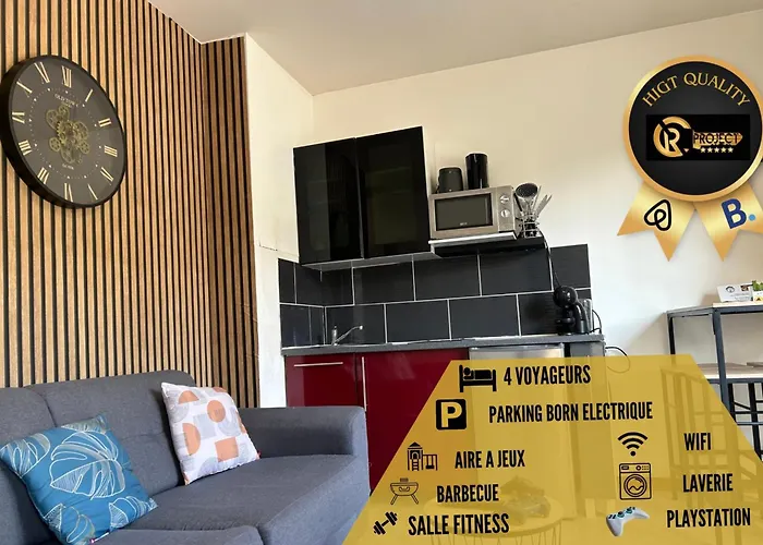 Το Reve Divin T2 En R/C Parking-Bagagerie-Salle Sport-Barbecue έχει δωμάτια εξοπλισμένα με γραφείο και τηλεόραση επίπεδης οθόνης με δορυφορικά κανάλια και προσφέρει ιδανικό κατάλυμα στη Λούρδη. Μερικά δωμάτια διαθέτουν βεράντα για χαλάρωση των επισκεπτών.